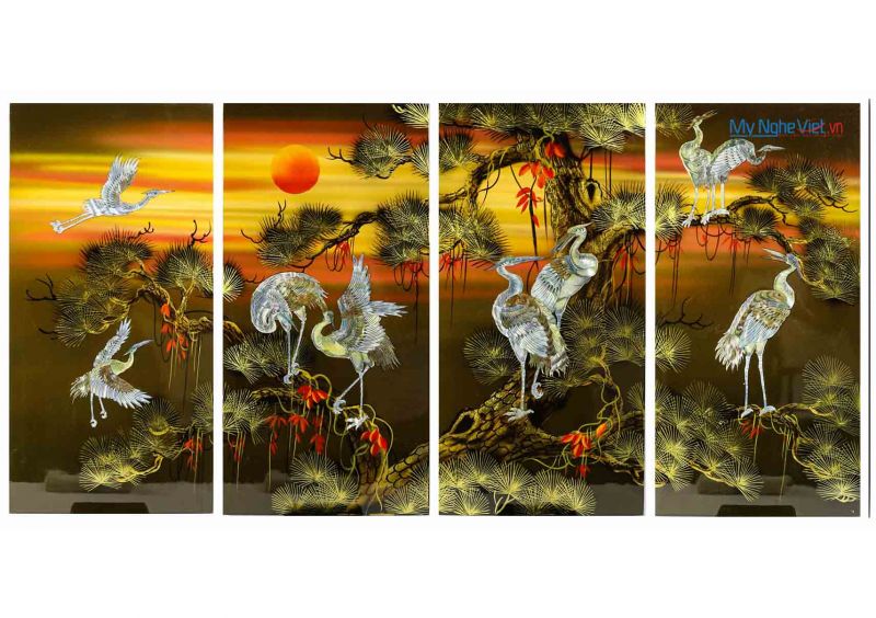 Tranh bộ cò đào nền vàng (4 tấm) MNV-SMA300